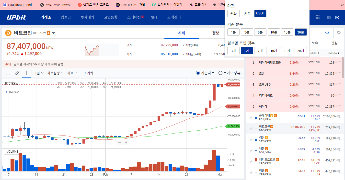 코인 종목들의 시세변화를 보여주는 확장 프로그램을 개발 중 이슈
